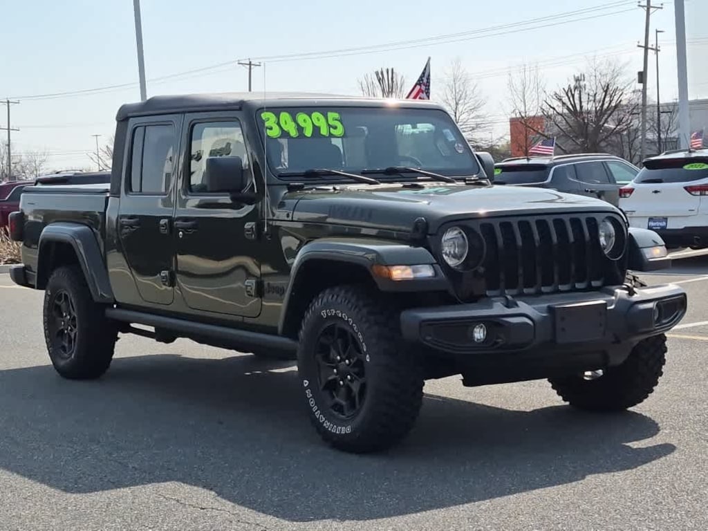 Engine: 3.6L V6 24V VVT UPG I w/ESS, Transmission: 8-Speed Automatic (850RE), Willys, Mold In Color Bumper w/Gloss Black, Protection Sill Rails, 4-Wheel Drive Decal, Black Grille, Willys Hood Decal, Rear Heavy Duty Red Accent Shock Absorbers, Body Color Fender Flares (2-Piece), 97 MPH Vehicle Max Speed Calibration, Front Heavy Duty Red Accent Shock Absorbers, Daytime Running Lamp System, Bridgestone Brand Tires, Transmission Skid Plate, Selec-Speed Control, Trailer Hitch Zoom, Class IV Receiver Hitch, Heavy Duty Engine Cooling, 240 Amp Alternator, MOPAR SPRAY IN BEDLINER, SiriusXM Radio Service, (STD). Jeep Willys Sport with Sarge Green Clearcoat exterior and Black interior features a V6 Cylinder Engine with 285 HP at 6400 RPM*.