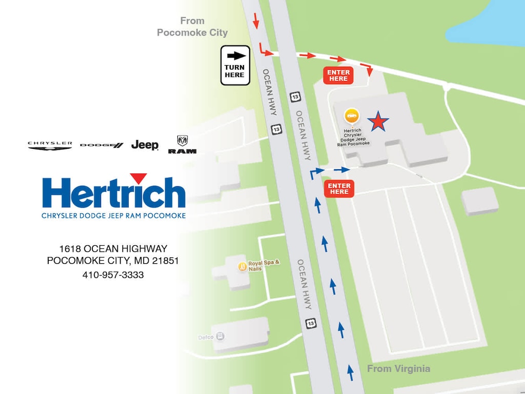 Located at 1337 Ocean Highway Pocomoke City, MD 21851. Serving the Eastern Shore for over 60 years, Hertrich Chevrolet and Toyota of Pocomoke are part of The Hertrich Family of Automobile Dealerships. The best selection of new and used vehicles on Delmarva. Offering the most complete line of high-quality sales and service new and used vehicles in the area of Berlin, Salisbury, Fruitland, Ocean Pines, Ocean City, Snow Hill, Pocomoke, Princess Anne, Crisfield, New Church, Chincoteague, Accomac, Pa